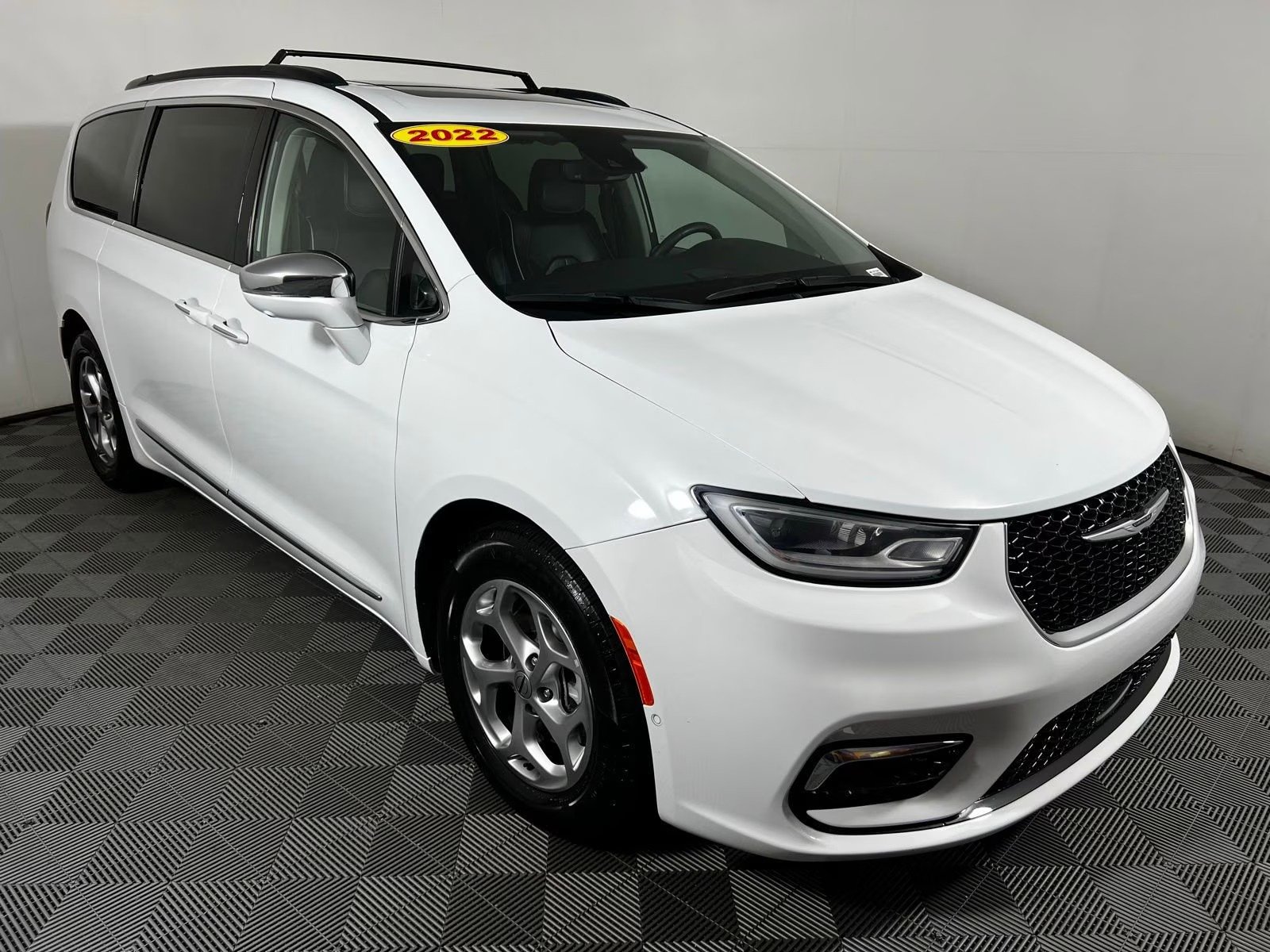 CARFAX One-Owner. Priced below KBB Fair Purchase Price! 2022 Chrysler Pacifica Limited Bright White Clearcoat FWD 3.6L V6 24V VVT 9-Speed 948TE Automatic Black/Alloy/Black w/Premium Leather Trim Bucket Seats, 19 Speakers, 3rd row seats: split-bench, AM/FM radio: SiriusXM 360L, Apple CarPlay/Android Auto, Auto Adjust In Reverse Exterior Mirrors, Auto-dimming Rear-View mirror, Exterior Mirrors w/Memory, Front dual zone A/C, Front fog lights, Garage door transmitter: HomeLink, harman/kardon® Speakers, Heated steering wheel, Navigation System, ParkView Rear Back-Up Camera, Power Liftgate, Power moonroof, Rear air conditioning, Rear window defroster, Remote keyless entry, Steering wheel mounted audio controls, Wheels: 18 x 7.5 Painted Aluminum Design 2.