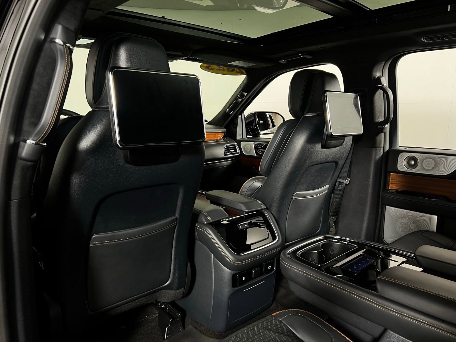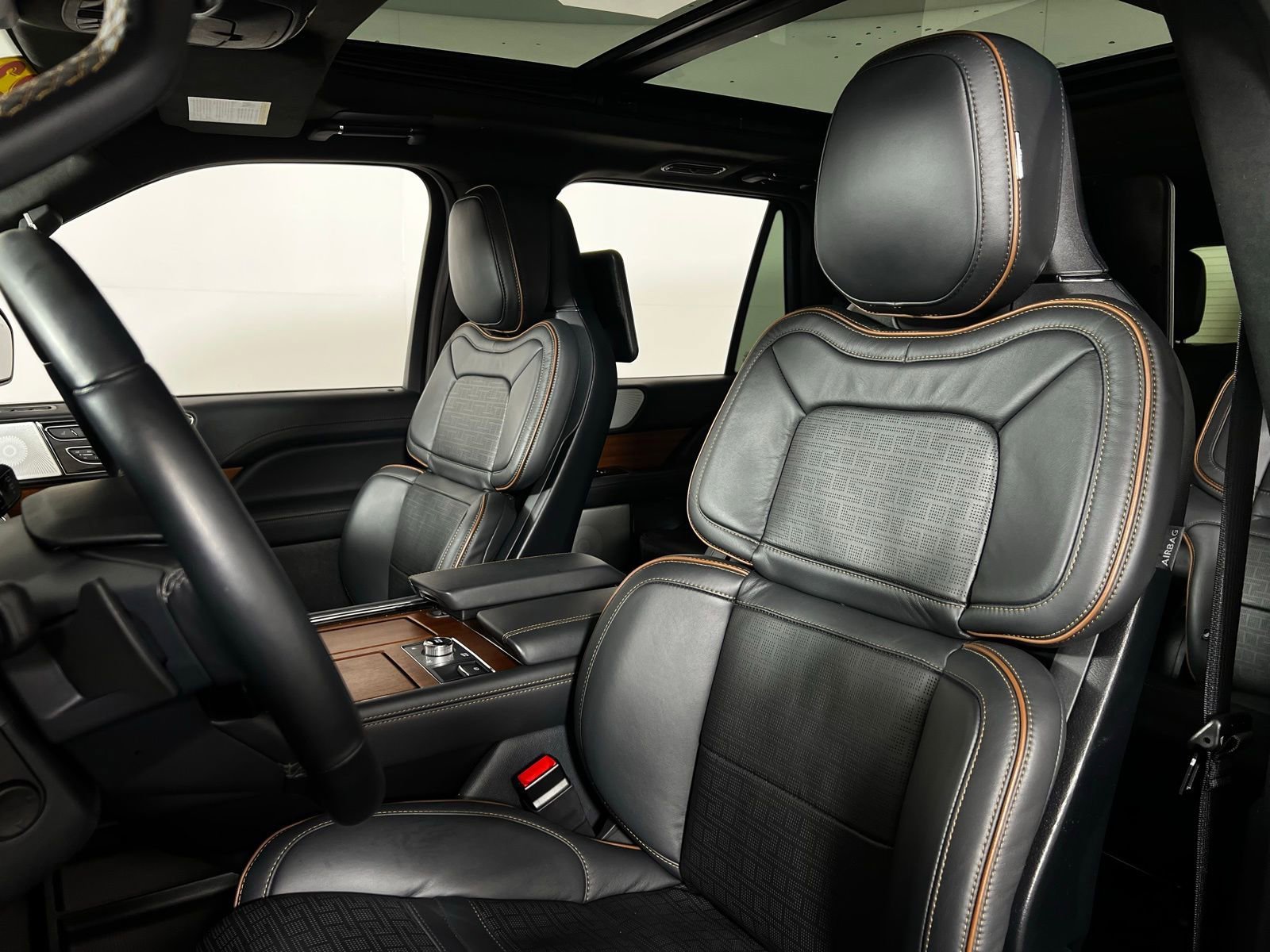 CARFAX One-Owner. 2023 Lincoln Navigator Black Label Infinite Black Metallic Clearcoat 4WD V6 10-Speed Automatic Black Onyx w/Brandy Stitch w/Venetian Lthr Auto Htd/Ventiltd Capt's Chairs (V), 26mm Radiator, 2nd Row Htd/Vent Enhanced Massage Seats w/Console, Active Park Assist 2.0 Delete, Adjustable pedals, All-Weather Floor Liners w/Carpet Floor Mats, AM/FM radio: SiriusXM with 360L, Auto tilt-away steering wheel, Auto-dimming Rear-View mirror, Class IV w/4-Pin & 7-Pin Connectors, Electronic Traction Assist (eLSD), Equipment Group 800A Black Label, Exterior Parking Camera Rear, Front fog lights, Front Tow Hooks, Garage door transmitter, Genuine wood console insert, Genuine wood door panel insert, Head restraints memory, Headliner - Alpine Dinamica Suede, Heads-Up Display, Heated steering wheel, Heavy-Duty Trailer Tow Package, Leather-Wrapped Interior - Alpine w/Black Stitch, Navigation system: Connected Navigation (3-year trial), Power Liftgate, Power moonroof: Panoramic Vista Roof, Pro-Trailer Backup Assist 2.0, Radio: Revel Ultima 3D Audio System w/28 Speakers, SiriusXM w/360L, Smart Trailer Tow, Speed-Sensitive Wipers, SYNC 4 Communications & Entertainment System, Tiered Cargo Area Management System, Trailer Brake Controller, Trailer Sway Control, Voice-Activated Touchscreen Navigation System, Wheels: 22 14-Spoke Bright Machined Aluminum.
